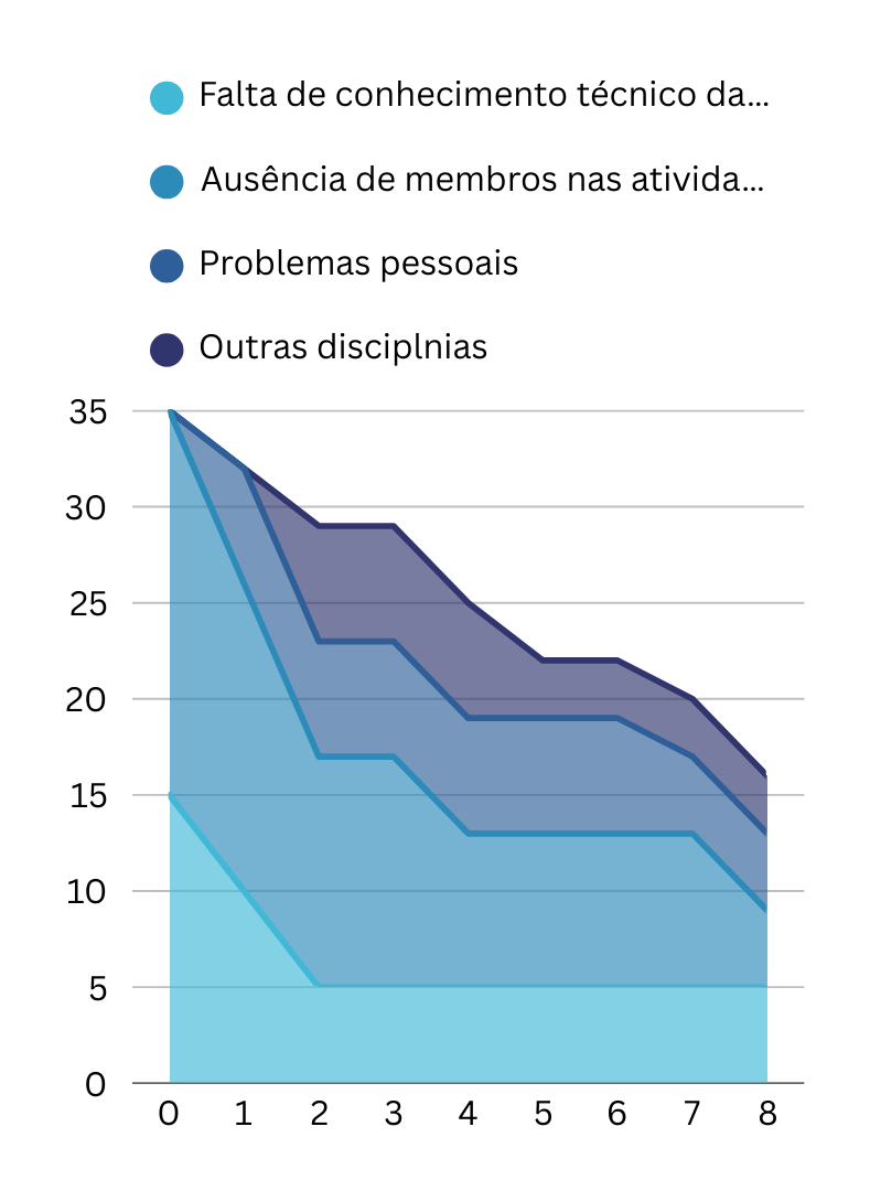 - Pode refletir momentos de maior carga acadêmica, exigindo da equipe uma maior capacidade de conciliação entre o projeto e outras demandas curriculares.
